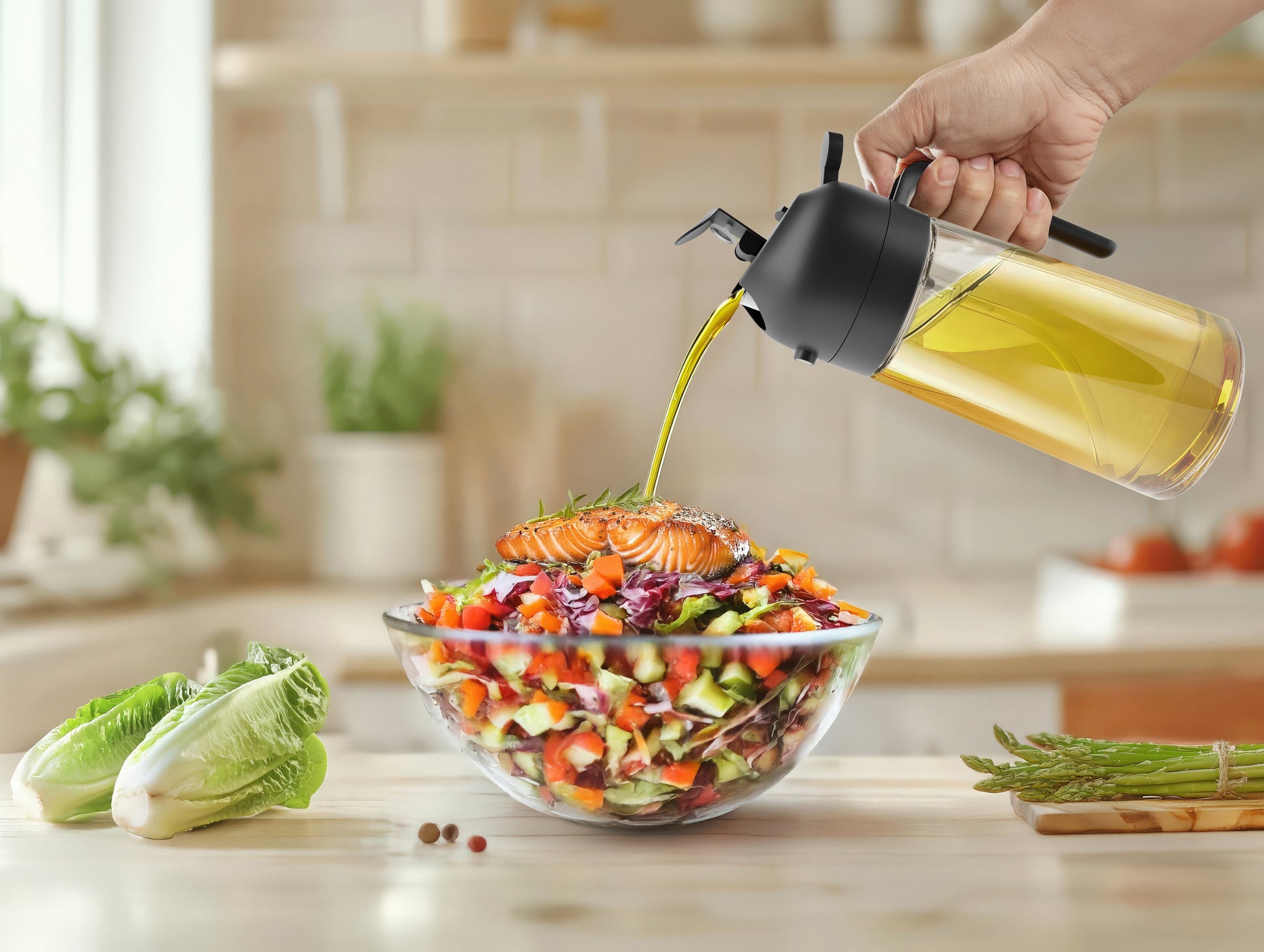 Upgrade your kitchen with our premium 2-in-1 Olive Oil Sprayer and dispenser Bottle—the ultimate cooking companion for home chefs, foodies, and health-conscious cooks. This 16oz / 470ml glass bottle combines precision oil control with a sleek, ergonomic design, making it the ideal tool for air fryer recipes, grilling, frying, roasting, salad dressing, and more.